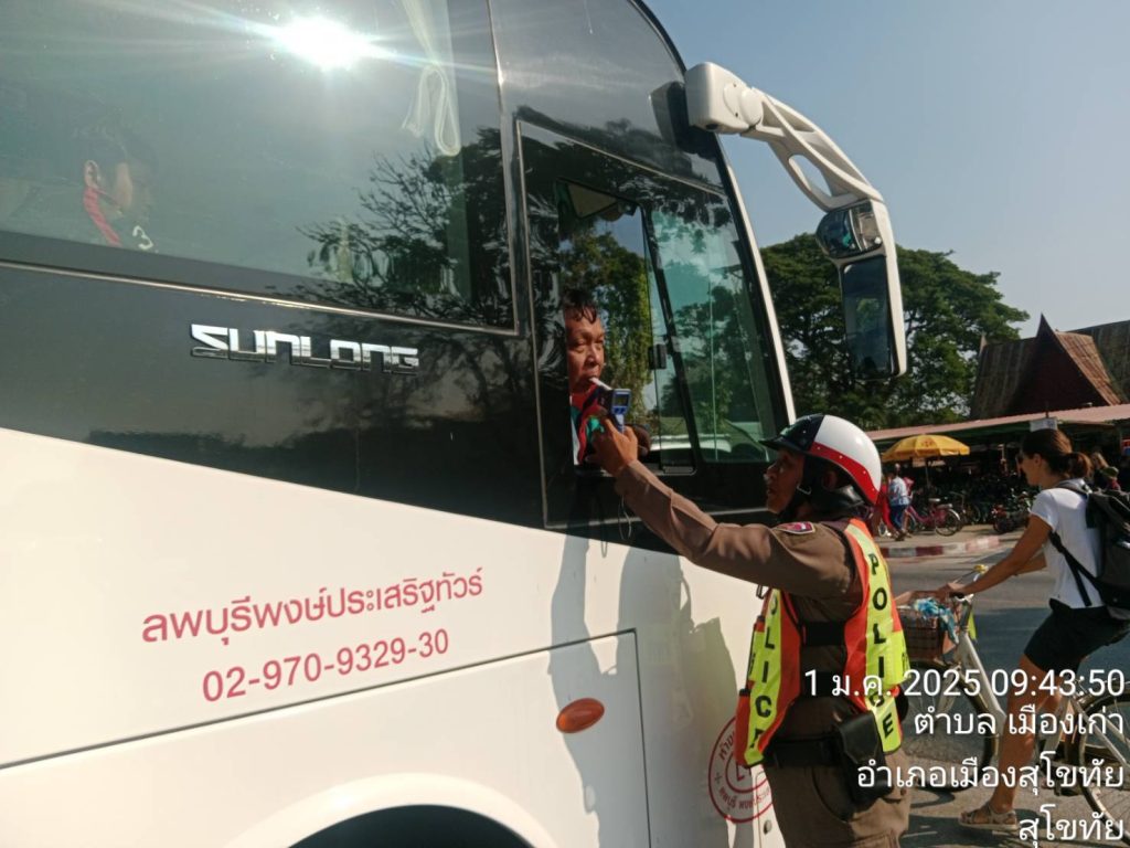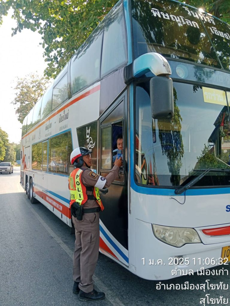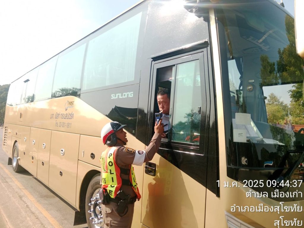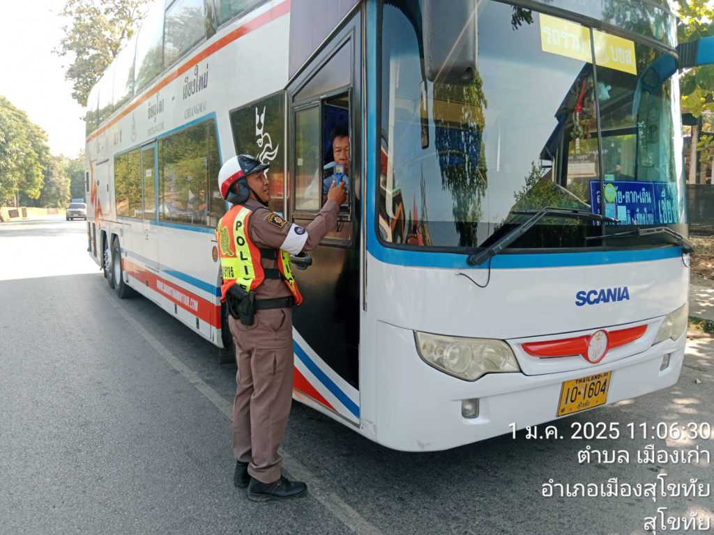 วันที่ 1 ม.ค. 2568 เวลา 10.00 น. ชุด60 ทำการเปาวัดปริมาณแอลกอฮอล์รถโดยสารประจำทาง ในพื้นที่รับผิดชอบ