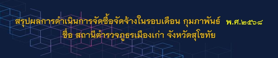 • สรุปผลการจัดซื้อจัดจ้างจำแนกข้อมูลเป็น รายเดือน เดือน ก.พ.68 ในรูปแบบไฟล์ PDF คลิ๊กที่นี่