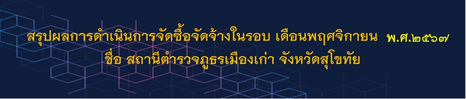 • สรุปผลการจัดซื้อจัดจ้างจำแนกข้อมูลเป็น รายเดือน เดือน พ.ย.67 ในรูปแบบไฟล์ PDF คลิ๊กที่นี่